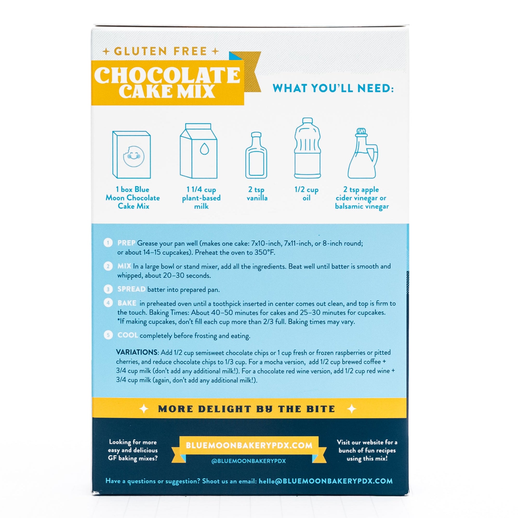Ingredients: Cane sugar, sorghum flour, unmodified potato starch, white rice flour, Dutch process cocoa powder, tapioca flour, baking powder (sodium acid pyrophosphate, sodium bicarbonate, non-GMO cornstarch, monocalcium phosphate), baking soda, xanthan gum, sea salt.