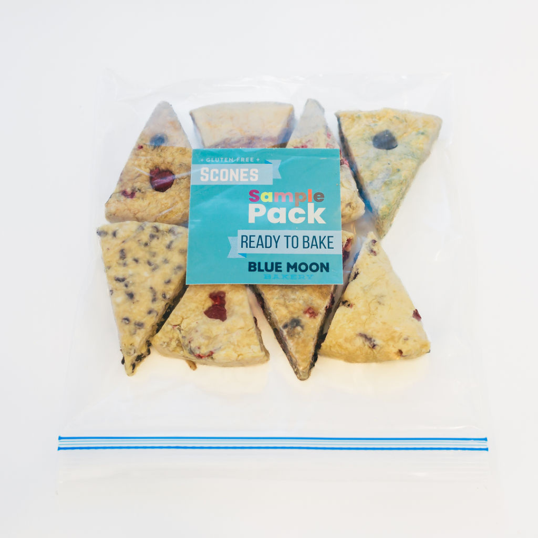- Sample Pack: Includes 8 assorted gluten-free scones. Flavors vary weekly based on availability. No substitutions.