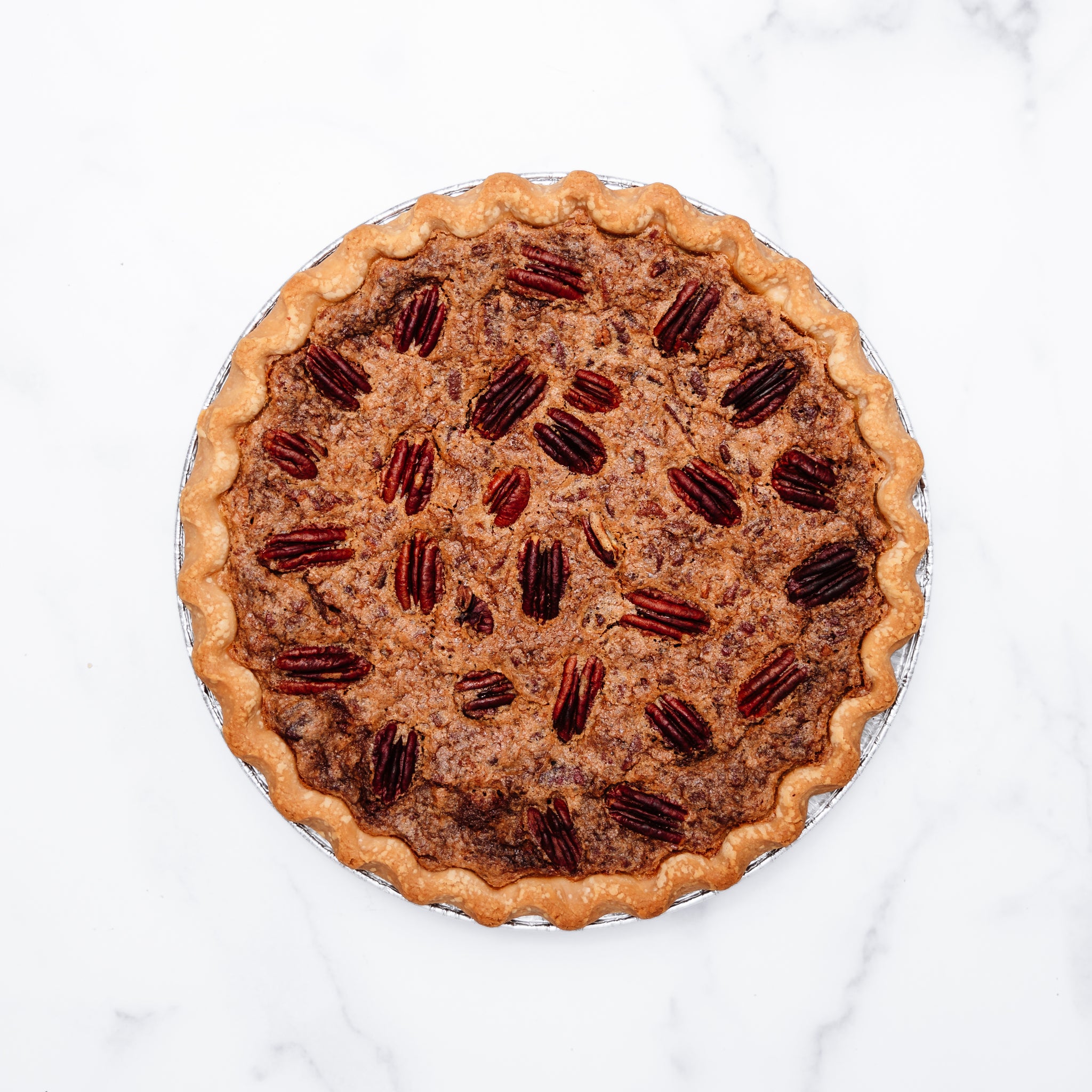 Ingredients Organic sugar, eggs, pecans, butter, cream, gf flour (brown rice, potato starch, tapioca, xanthan gum), cinnamon, vinegar, vanilla, sea salt. Pie crust: GF flour blend (brown rice, potato starch, tapioca, xanthan gum), butter, water, salt, lemon juice, sugar.